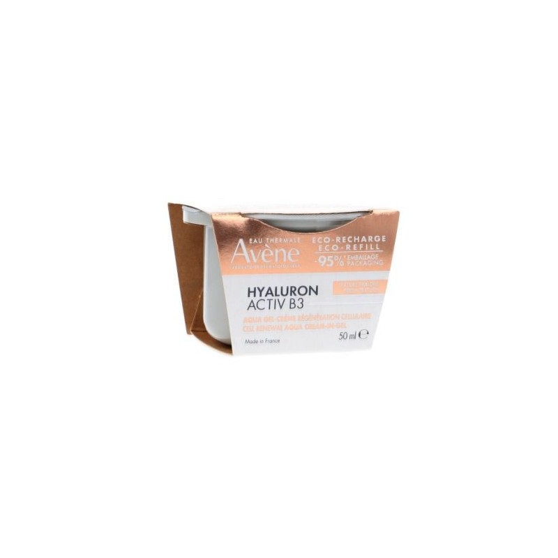 Con la edad, todo se acelera. Las células envejecidas se extienden y la piel funciona a cámara lenta. Los laboratorios dermatológicos avène han creado aqua gel-crema hyaluron activ b3 con una concentración del 0,45 % de ácido hialurónico puro (de alto peso molecular y tamaño medio) y niacinamida (6 %) para actuar sobre la causa del envejecimiento y prolongar la vida de las células*. Con una sola aplicación, la piel queda rellena, tersa y radiante. Al cabo de 15 días, se regenera, se reafirma y se corrigen las arrugas**. Su textura fresca y ligera, con una delicada fragancia floral, aporta comodidad a la piel. También es una buena prebase de maquillaje. Aqua gel-crema regeneradora celular hyaluron activ b3 es un producto ecológico para el cuidado de la piel que contiene un 91 % de ingredientes de origen natural, sin ingredientes de origen animal, en un tarro de cristal rellenable.
